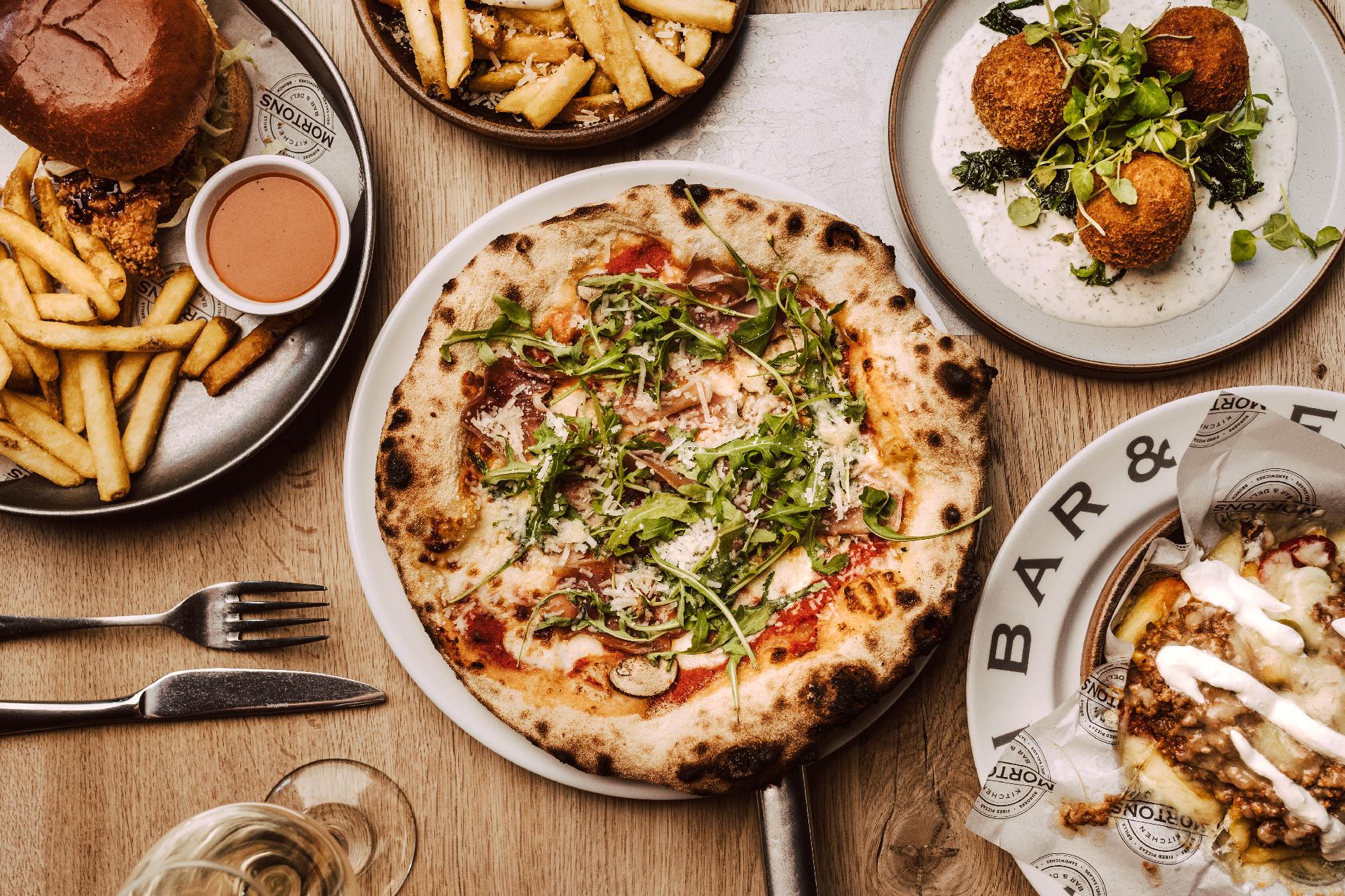 Start your day with our famous brunch: perfectly poached eggs, toasted sourdough, crispy bacon or a classic Mortons fry-up. Lunchtimes bring hearty sandwiches, pizzas and burgers, while our evening menu adds comforting seasonal dishes and deli-style favourites. On Sundays, we serve a proper roast — with all the trimmings and plenty of reasons to linger.